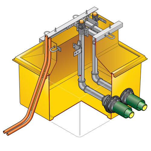 862mm x 862mm ( 34″ x 34″) GRP solid base sump and corbel to fit Wayne HELIX dispenser model. Includes dispenser support rails, 2 shear valve rails and all fixings.